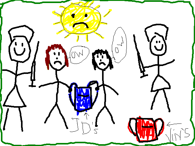 "I gets blue and if you has a blue one too, then we'll get 'em mixed up and I'll end up taking your stuff to my class and you'll take my stuff to your class," JD blurted out his explanation.