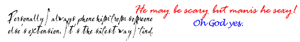 not to be afraid of his glare and his temper. Trouble is they all are, only