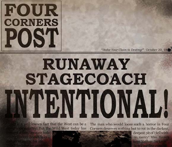 "First she undertakes to ruin my reputation, now my livelihood." Standish continued. "If this continues as the normal state of affairs I shall be run out of town, and that is unacceptable. The Four Corners Post cannot remain in operation."