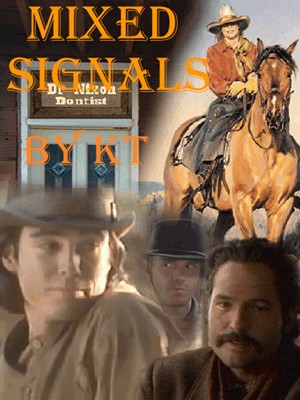 JD watched as a young boy in warn canvas pants and an over large red shirt walked down the sidewalk beside a heavily pregnant woman with dark brown hair. As he watched, Nettie Wells wagon rolled into town with both Nettie and Casey on board. Even before the wagon had stopped Casey jumped down and ran to the boy. As a rather startled JD watched, the two embraced and hugged a little too enthusiastically for JD's liking. He was about to get up and go and see who this apparent rival was when the boys hat fell off and long brown hair cascaded down 'his' back. He was clearly a she, and all JD's jealousy died instantly. As he watched Nettie walked into the Potters store while the two girls, clearly close friends, walked arm in arm along the street, the pregnant lady waddling in their wake. Since Casey had never mentioned a girlfriend he guessed they hadn't see each other for a while. As the trio made its slow progress it became clear they were headed for Nathan's clinic. Which considering that in JD eyes, the older woman looked like she was about to have her baby right then and there, he wasn't a bit surprised.JD was still sitting and watching the world go by, it was too hot to do much else, when the three women came out of the clinic and with Nathan helping the pregnant lady, made their way downstairs. To his enormous surprise they then headed in his direction, in the direction of the saloon!